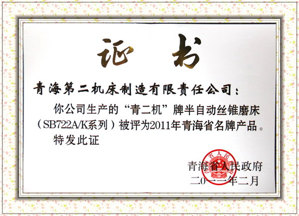 青海省名牌產(chǎn)品證書