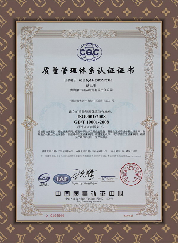 質量管理體系認定證證書
